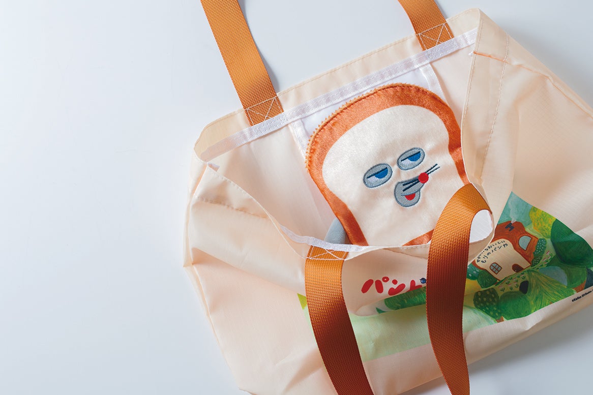A4サイズが入る大きさなので、荷物が増えたときのサブバッグとしてもとても便利。本体には、ロゴと絵本のワンシーンをあしらい、大人から子どもまで使いやすいデザイン。カラーにもこだわり、本体の色はパンどろぼうをイメージした配色にしています。