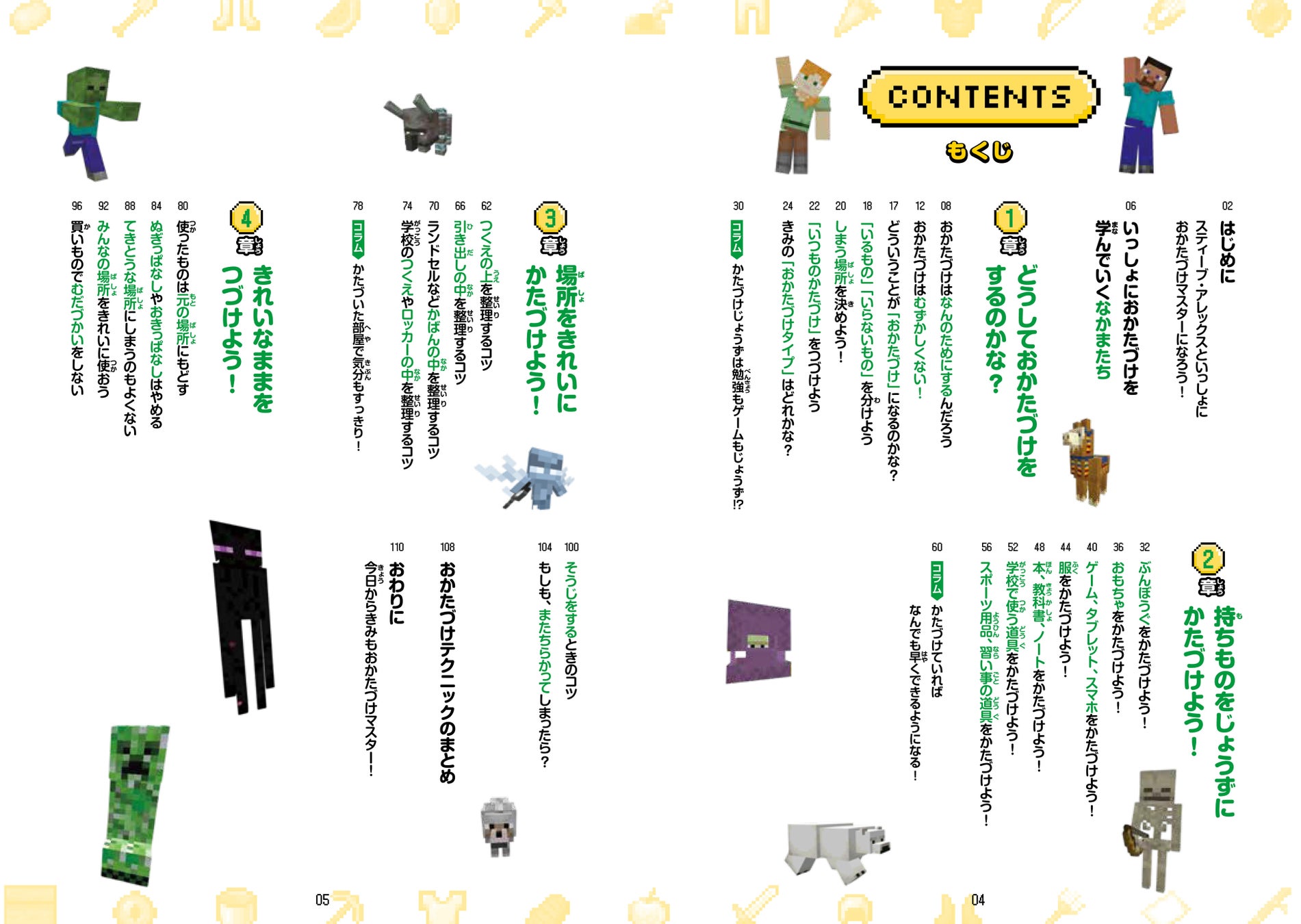 大人気ゲーム「マインクラフト」のキャラクターと一緒に、小学生までに身につけたい「おかたづけ」を楽しく学べる本が登場しました。