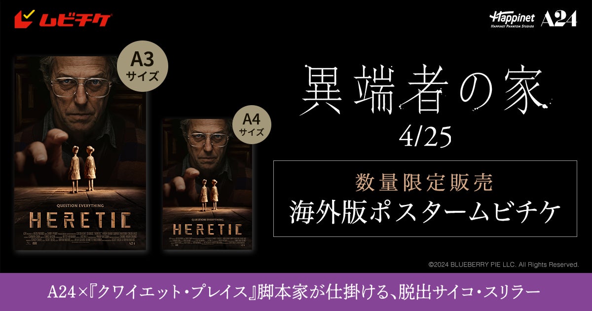 株式会社ムービーウォーカー(代表取締役社長:五十嵐淳之)は、3月7日(金)正午より『異端者の家』(4月25日公開)のA3サイズとA4サイズ海外版ポスタームビチケ前売券(オンライン)を数量限定で販売しました。