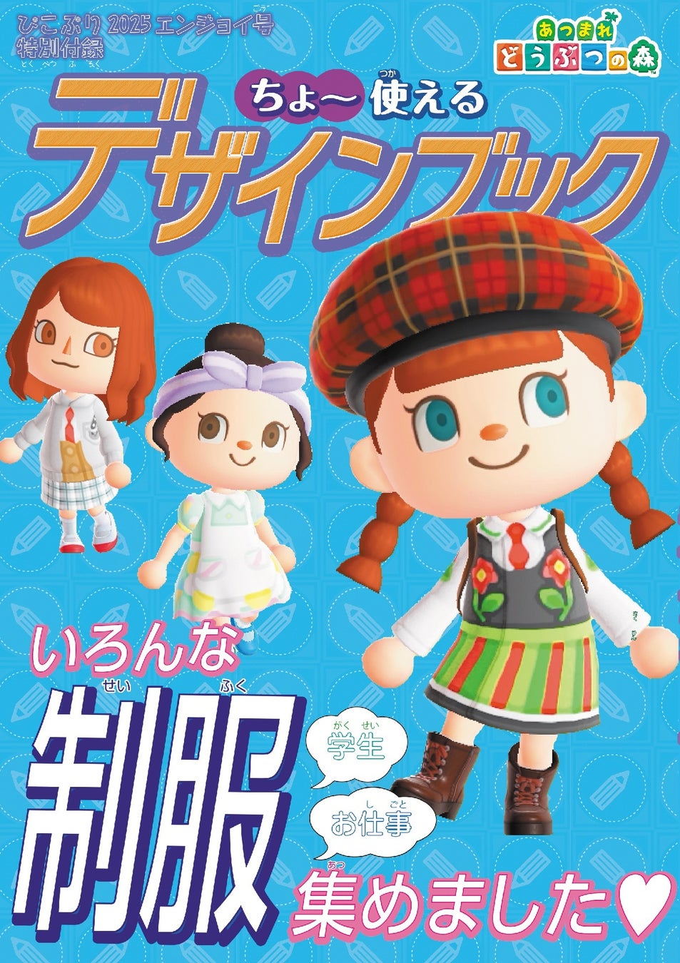 読者投稿をもとにプロがマイデザインに仕上げたドットパターンをたっぷり収録しています。Nintendo Switch Onlineに加入していなくてもデザインできるよう、ドット絵を大きく掲載! 今回は"制服"がテーマの洋服デザインを紹介しています。