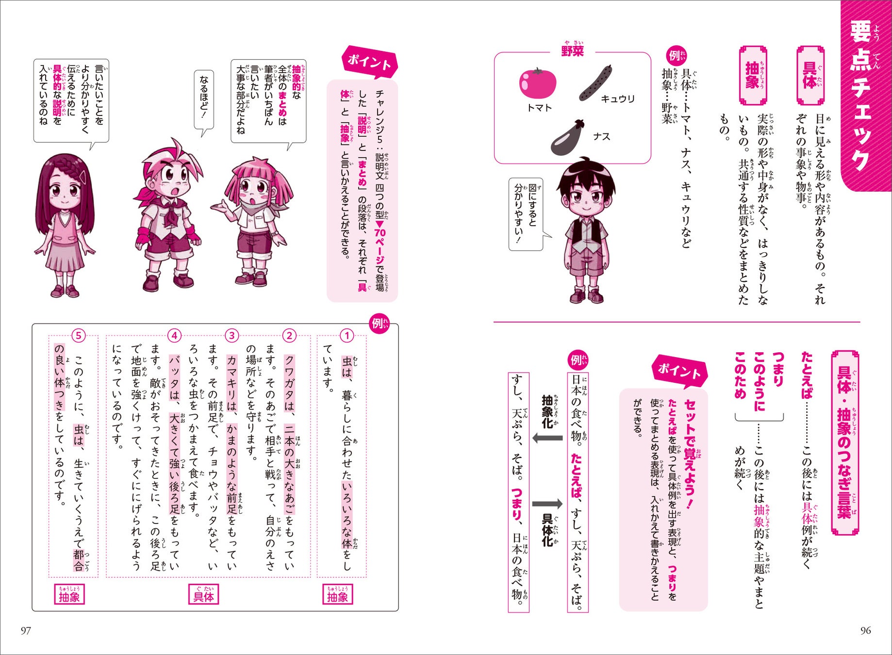 楽しいまんがのストーリーの中に豊富な例文と書き方のコツをもりこんでいるので、「こう書けばいいのか」という作文のより効果的なテクニックが身につきます。