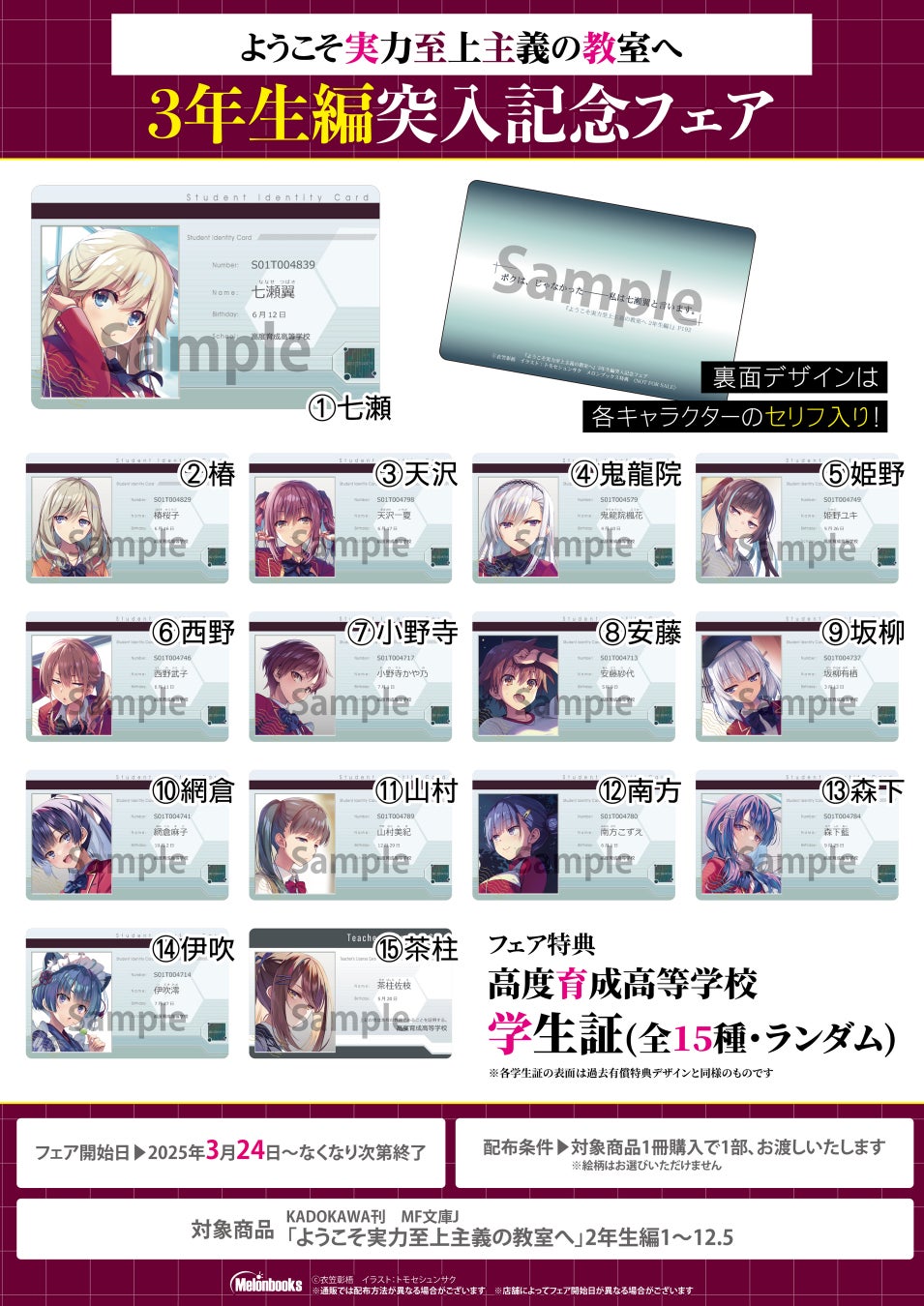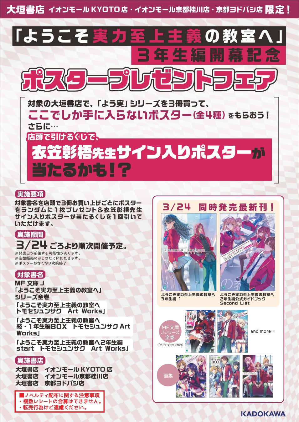 3月24日頃より全国対象書店にて、ようこそ実力至上主義の教室へ 3年生編スタート記念フェア開催決定!