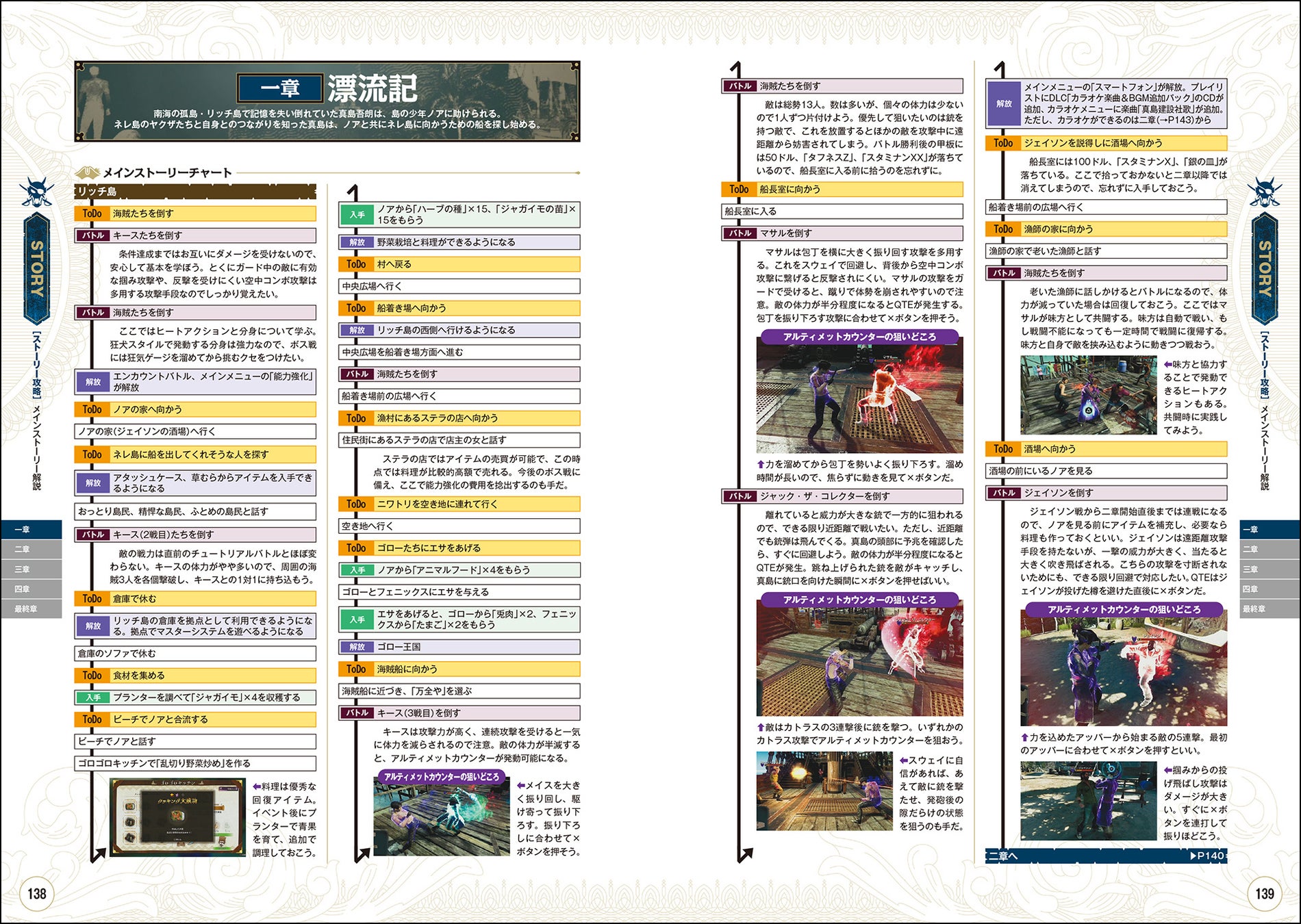 『龍が如く8外伝 Pirates in Hawaii』の完全攻略本には、記憶を失って海賊になった真島吾朗の破天荒な冒険活劇を遊び尽くすための情報を満載。波乱万丈のメインストーリーはもちろんのこと、ボリュームたっぷりのサイドミッションや多彩なプレイスポットまで、収録されたコンテンツのすべてを完全攻略。"狂犬"と"パイレーツ"のふたつのスタイルで戦う進化したバトルアクションについても詳しく解説するほか、各種データも網羅しています。