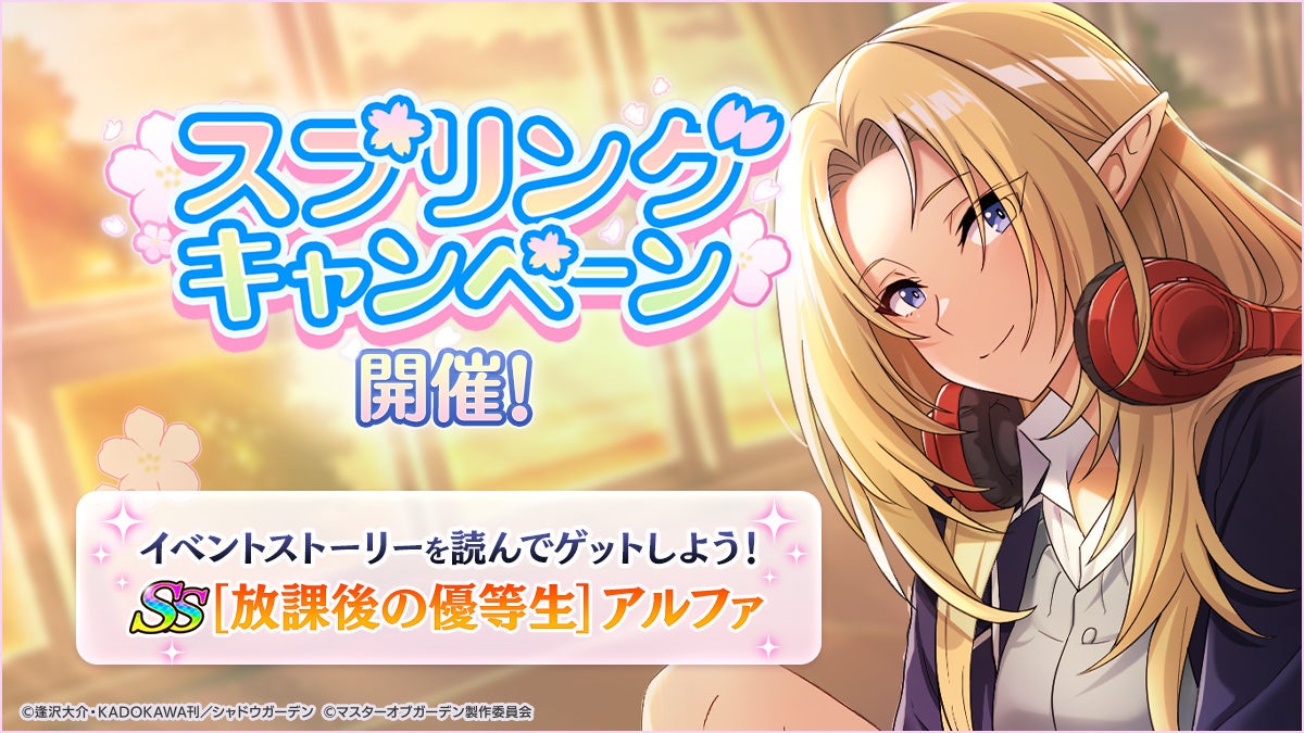 スプリングキャンペーン開催!期間中、[放課後の優等生]アルファが手に入るチャンス!