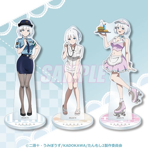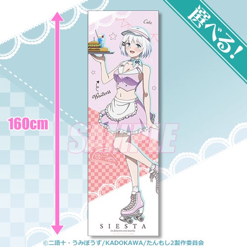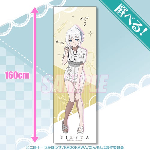 賞品は、ヒロイン・シエスタの誕生日を記念した、アニメスタジオ新規描き下ろしイラストによるオリジナルグッズとなります。イラストは、警察官姿のシエスタや、ナース姿のシエスタなど、キャラクターの新たな魅力が描かれています。絵柄が選べるBIG布ポスターや、定番のアクリルスタンドフィギュアなど、ファン必携のアイテムが目白押しです。