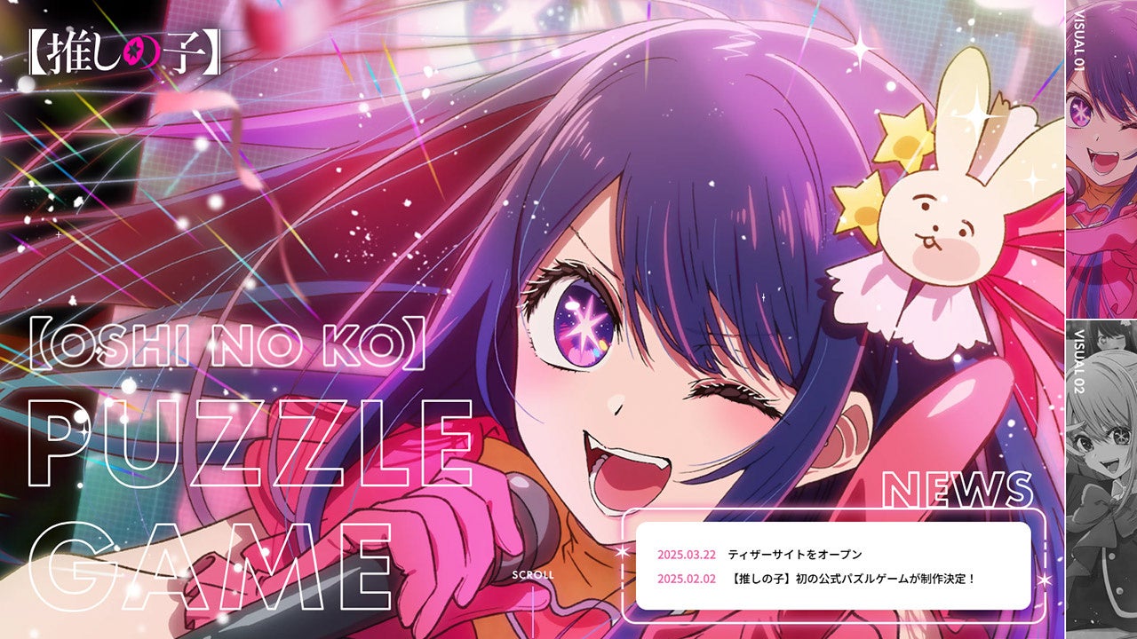 TVアニメ『【推しの子】』初となる公式パズルゲームのティザーサイトをオープンしました。TVアニメ第3期の放送も2026年に決定し、ますます盛り上がる『【推しの子】』。ゲームもアニメも最新情報をお見逃しなく!