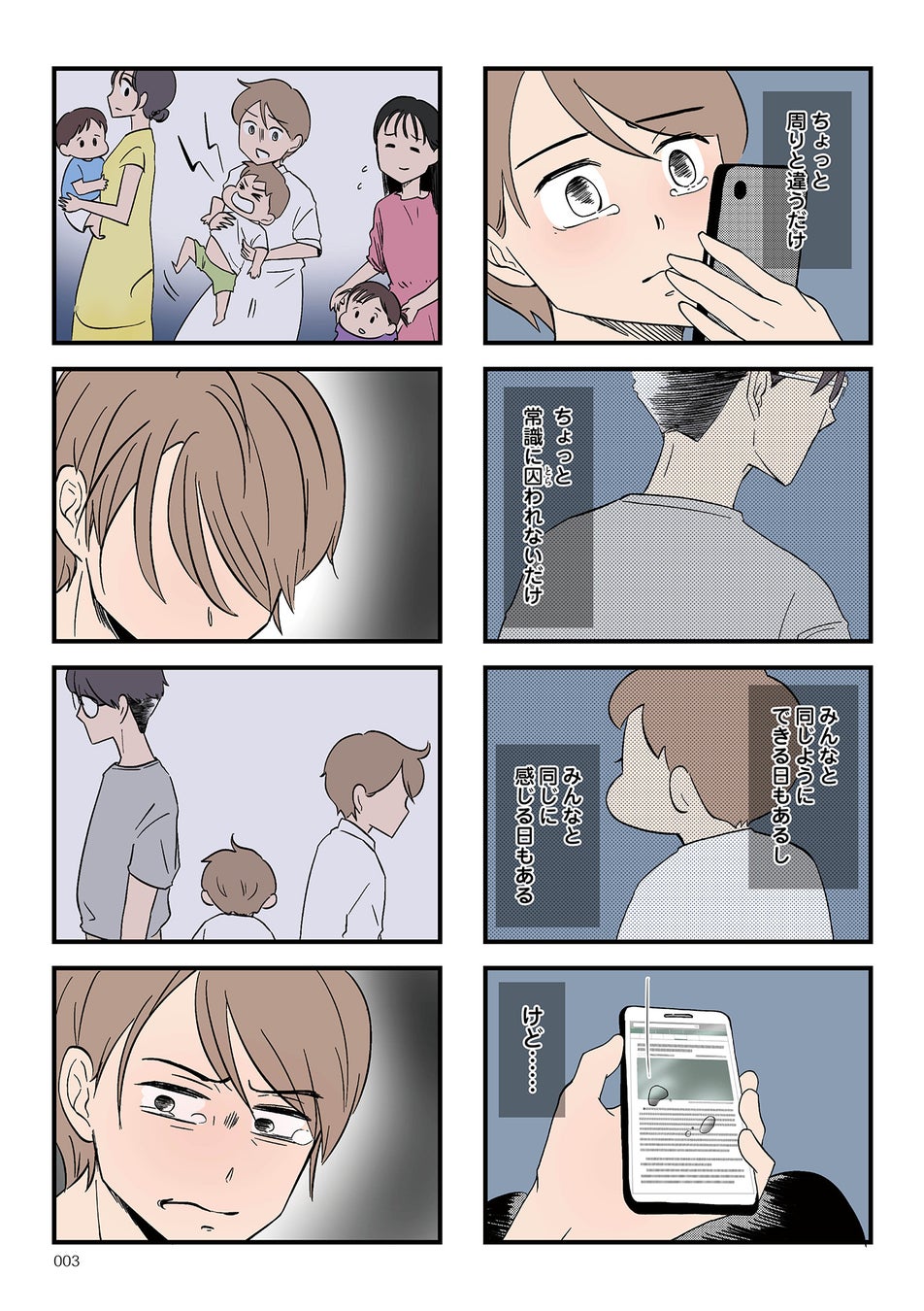 悩む母、夫に相談しようとしても、考え方が違い会話にならず、夫婦関係にも溝が生まれてしまう。「息子にとって」何が大切なのか、悩み、葛藤する母を描くリアルコミックエッセイ。