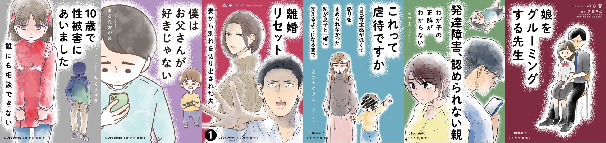 「幸せの裏側」は、幸せそうに見える人たちの裏にも、悩みや葛藤がある。普段人には見せない部分を描く、ストーリー型コミックエッセイシリーズ。あなたと一緒に色々なことを考えていきたいLScomicサブレーベルです。
