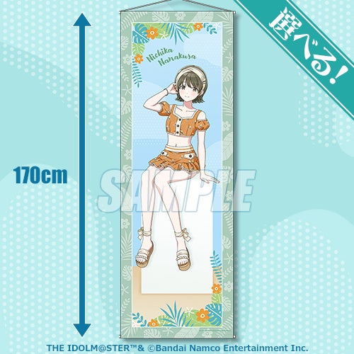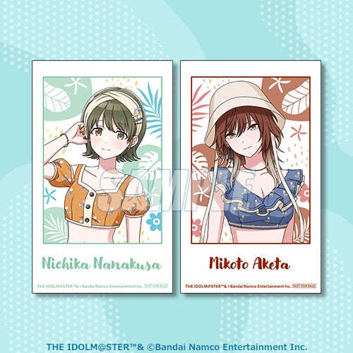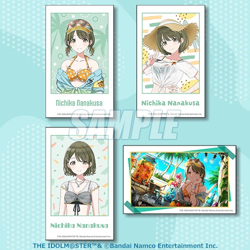 商品は水着衣装に身を包み、ユニット別スタイルブックの表紙にもなった「七草にちか」「緋田美琴」の特大タペストリーやアクリルスタンドのほか、バッグの中身ページで紹介されたアイドルたちが持ち歩いている愛用品のイラストを使用した3個セットのアクリルミニチャーム、ゲーム内で使用された歴代の水着イラストやカードイラストを使用したミニブロマイドセットやスクエア缶バッジ等、オリジナルグッズを多数展開しております。