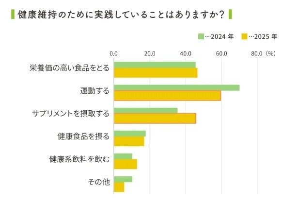 ・サプリメントを摂取する(2024年: 35.1%,2025年: 45.5%)