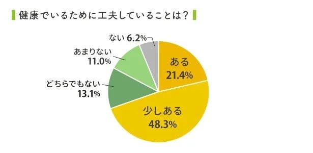 では「ご自身が健康でいるために工夫していること」はあるのでしょうか。「ある(21.4%)」「少しある(48.3%)」と、7割以上が工夫しているとの回答。子育て世代の女性たちの意識の高さが伺えます。