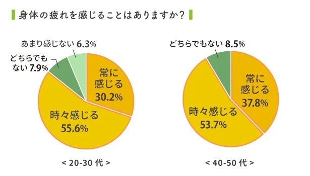 まずは「身体の疲れを感じることはありますか?」という質問から調査をスタート!20~30代よりもが40~50代がお疲れを感じているという結果になりました。