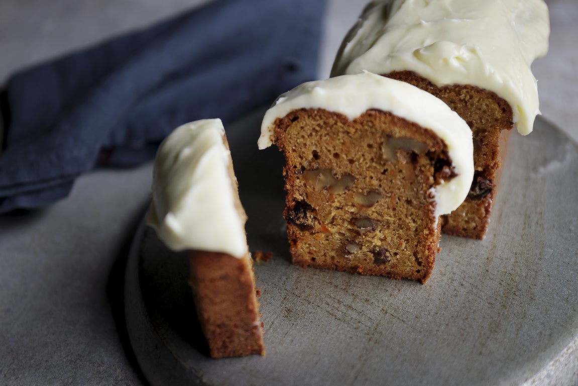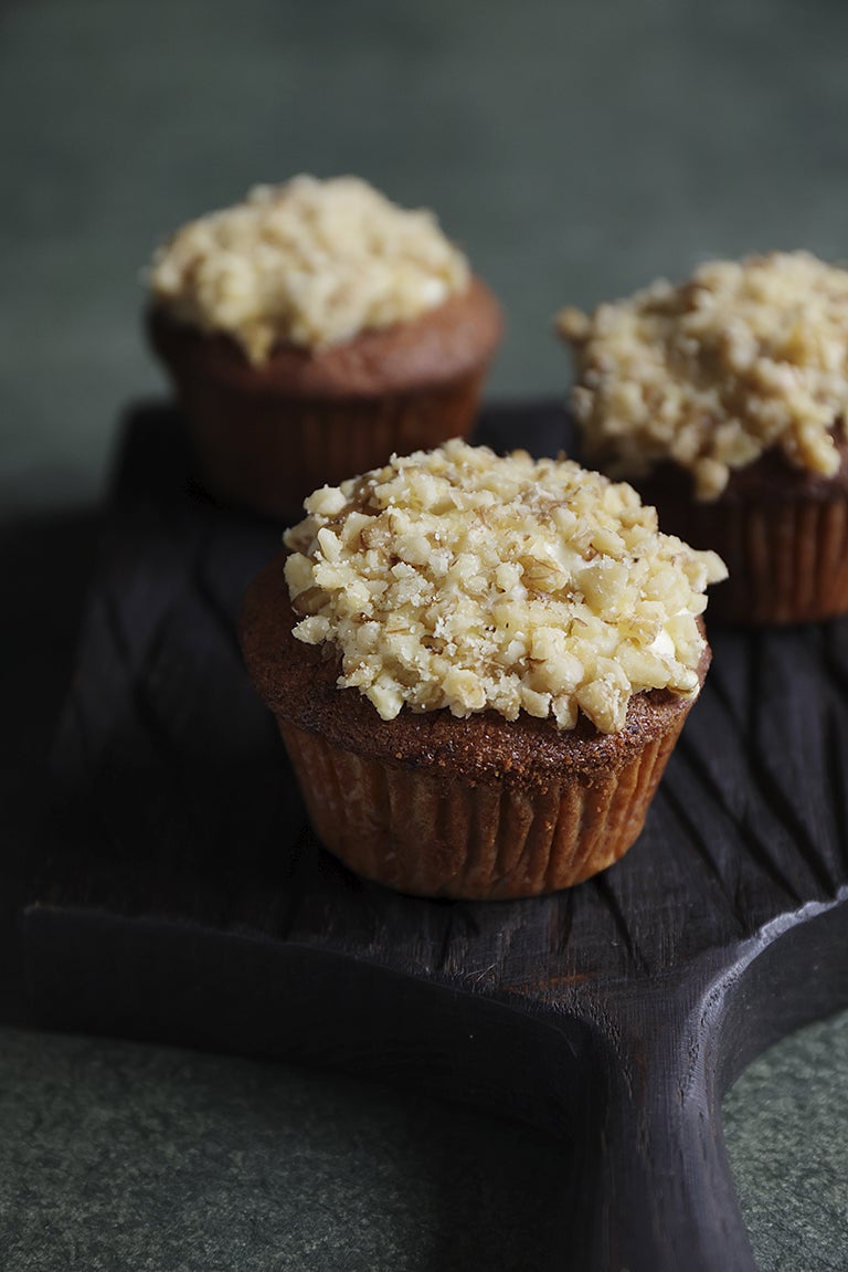 混ぜていくだけの簡単生地にアイシングがのった「キャロットケーキ」は、マフィン型で作るアレンジもあります。