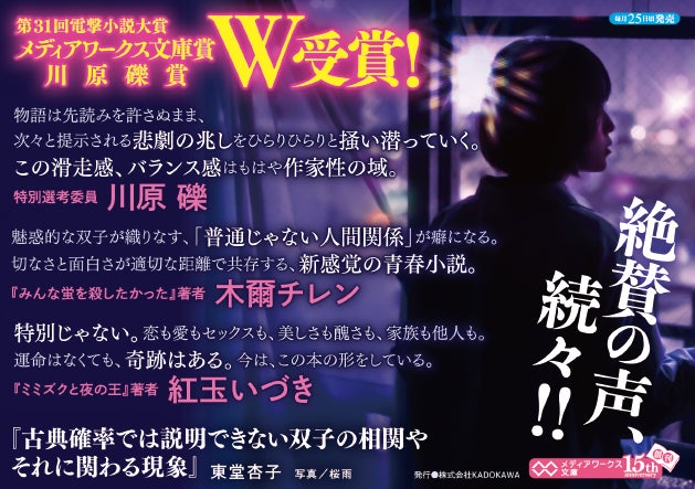 株式会社KADOKAWA(本社:東京都千代田区、取締役 代表執行役社長 CEO:夏野剛)では、第31回電撃⼩説⼤賞《メディアワークス文庫賞》受賞作2作品が本日4月25日(金)に発売いたしました。