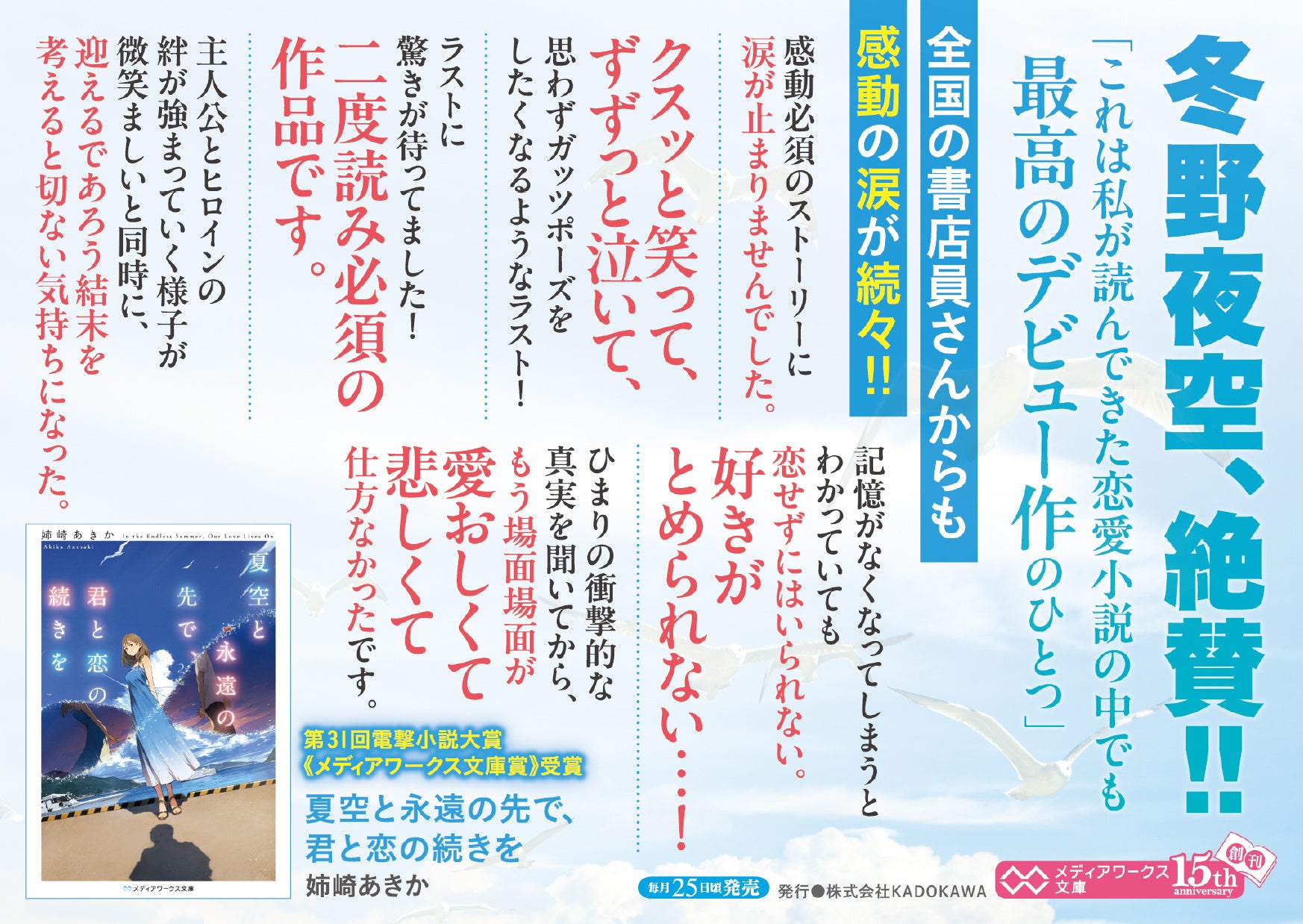 恋愛小説の名手、冬野夜空さんが嫉妬するほどの感動作に、全国の書店員さんも涙!