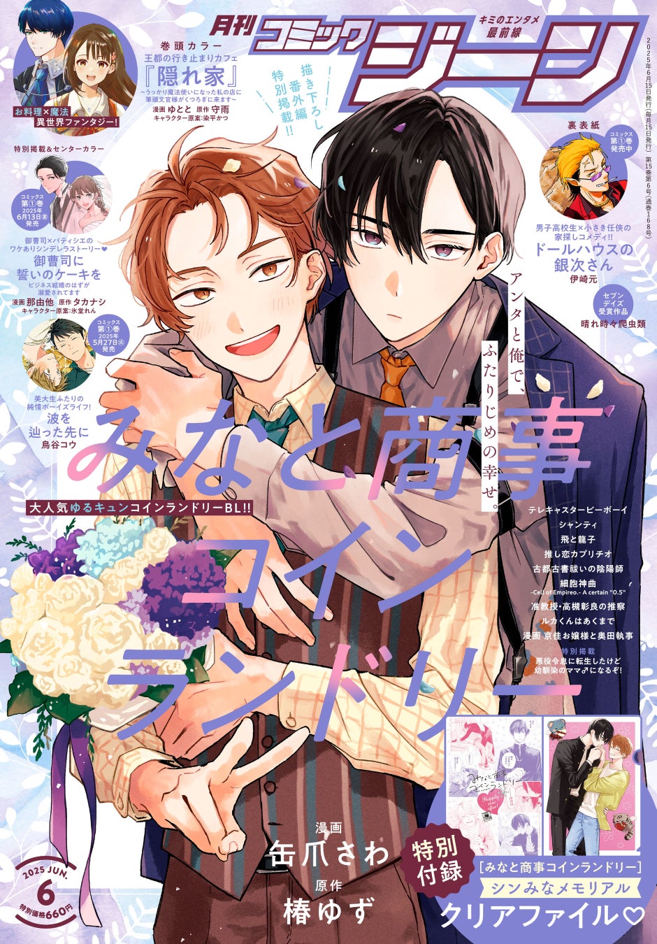 月刊コミックジーン6月号が2025年5月15日(木)に発売! 表紙は描き下ろし番外編特別掲載!!『みなと商事コインランドリー』、裏表紙には『ドールハウスの銀次さん』が登場!