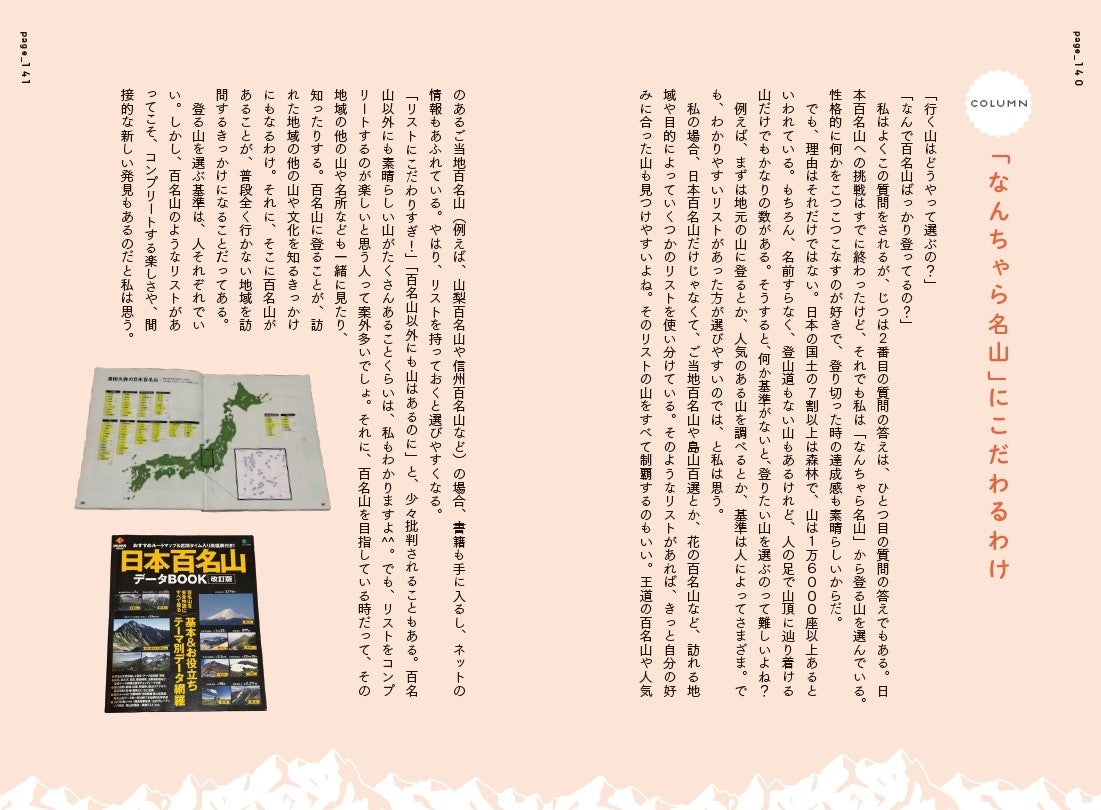 山はもちろん、温泉、ごはん、お酒に、出会った仲間たち……日本の山のよさは日本でしか味わえない!と語る彼女の目から見た、日本の山の素晴らしさが詰まった一冊です。
