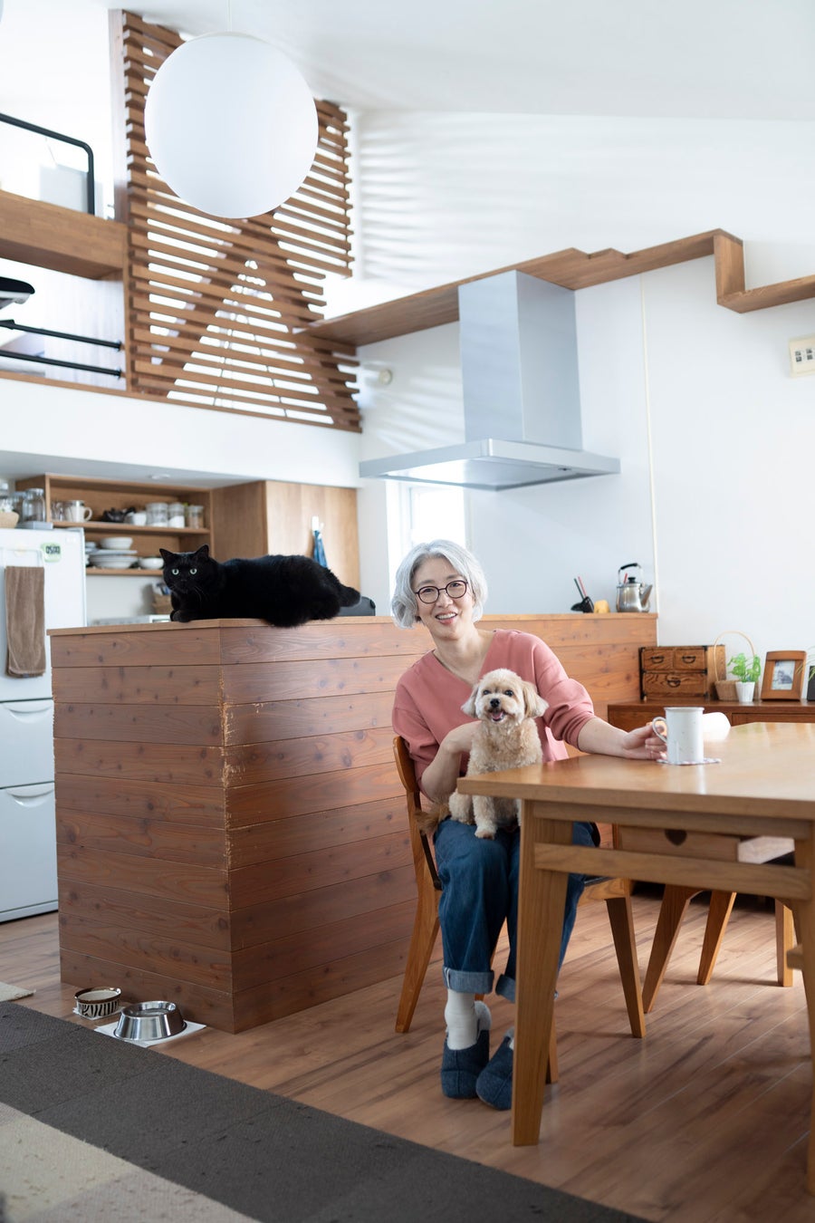 すっきりとした暮らしを楽しむ独身50代、ミドルシニア世代のりさねーぜ(酒井りさこ)さんは、北海道札幌市の一戸建てで、愛猫2匹、愛犬1匹とともに生活しています。