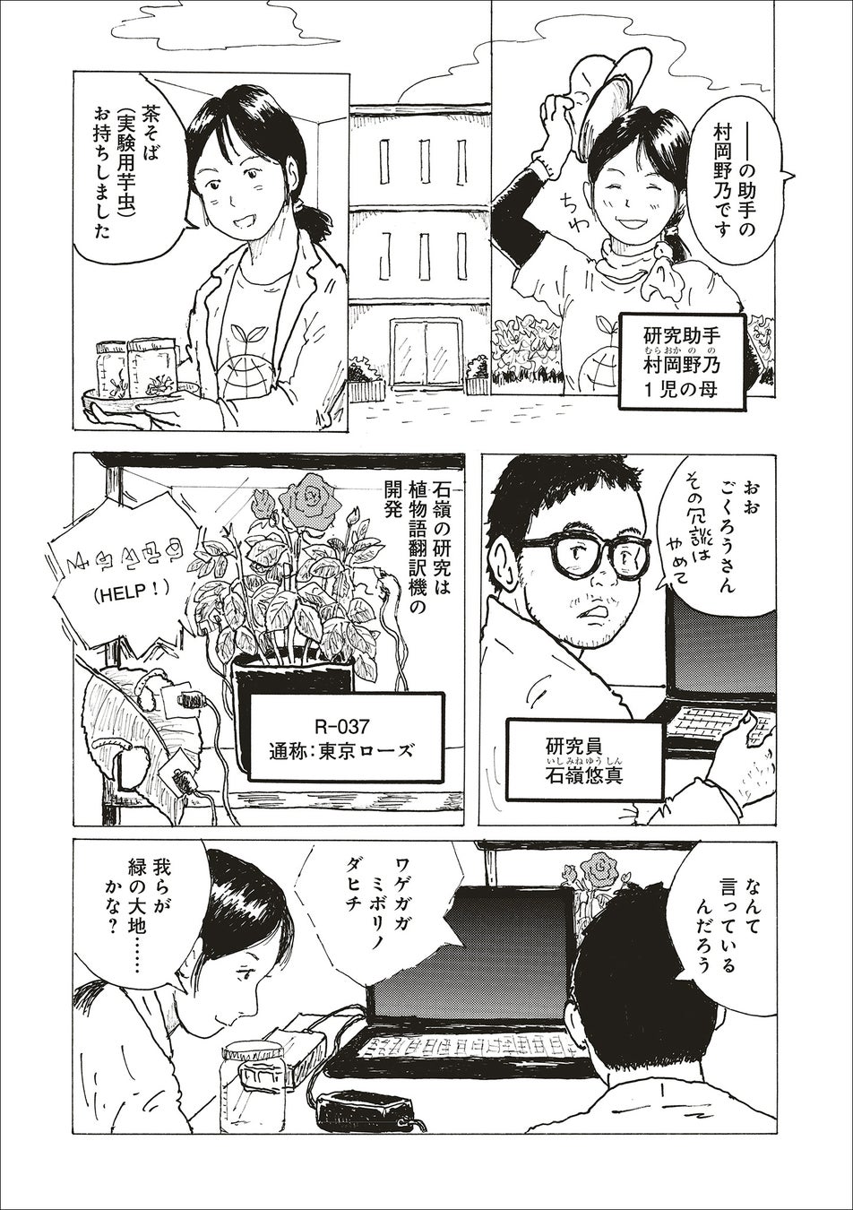 スタートアップ企業「グリーンプラネット」で次々と起こる、植物がからんだ「異変」。ワーママ研究者の野乃と、その息子の一樹は、植物たちの反乱にどう立ち向かうか!? 荻原さんが描いた不穏な植物の姿と、それに立ち向かう親子の雄姿にもぜひご注目ください!