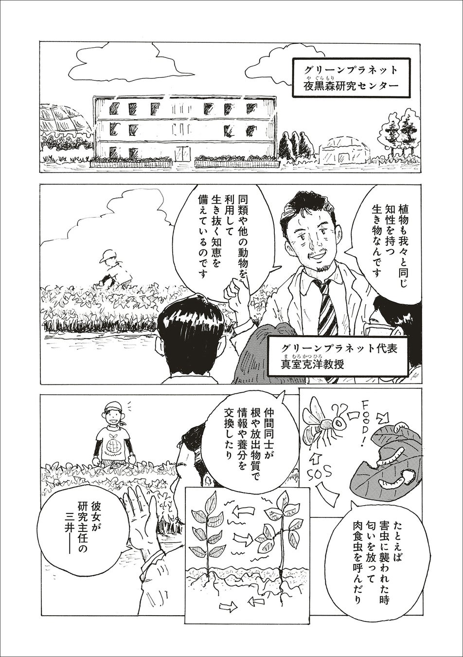 スタートアップ企業・グリーンプラネットに勤める村岡野乃は、植物の「会話(コミュニケーション)」について研究している。コマツナは虫にかじられると毒を合成したり、SOSを出して虫の天敵を呼び寄せたりするなど、植物もほかの生物と同様、驚くべき知性を持っていることがわかってきた。ある日、農場の視察に訪れた企業の社員が、改良された大豆を食べて救急搬送される事件が発生。さらには、原因不明の山火事や、飢えて狂暴化した猿による襲撃、森を走る「謎の野人」の目撃情報など、奇怪な出来事が相次いでいた。野乃は一連の事件を「植物による反乱」ととらえ立ち向かおうとするが……?