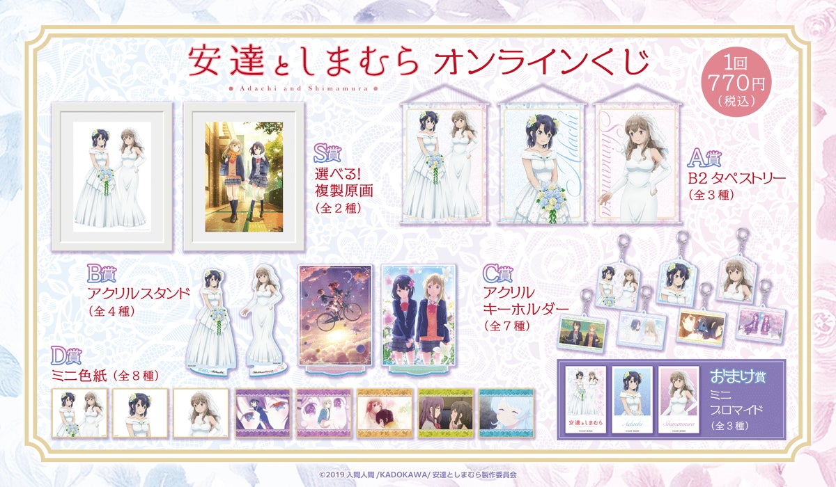 TVアニメ「安達としまむら」より、ウエディングドレスを身にまとった新規描き下ろしグッズなど、豪華賞品のオンラインくじが登場!