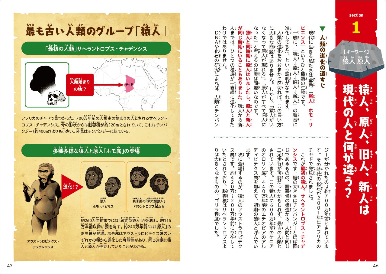 そんな複雑な700万年の人類史を、国立科学博物館長・篠田謙一による最新の解説、藤野リョウによる親しみのあるイラスト・マンガでわかりやすく学べます。
