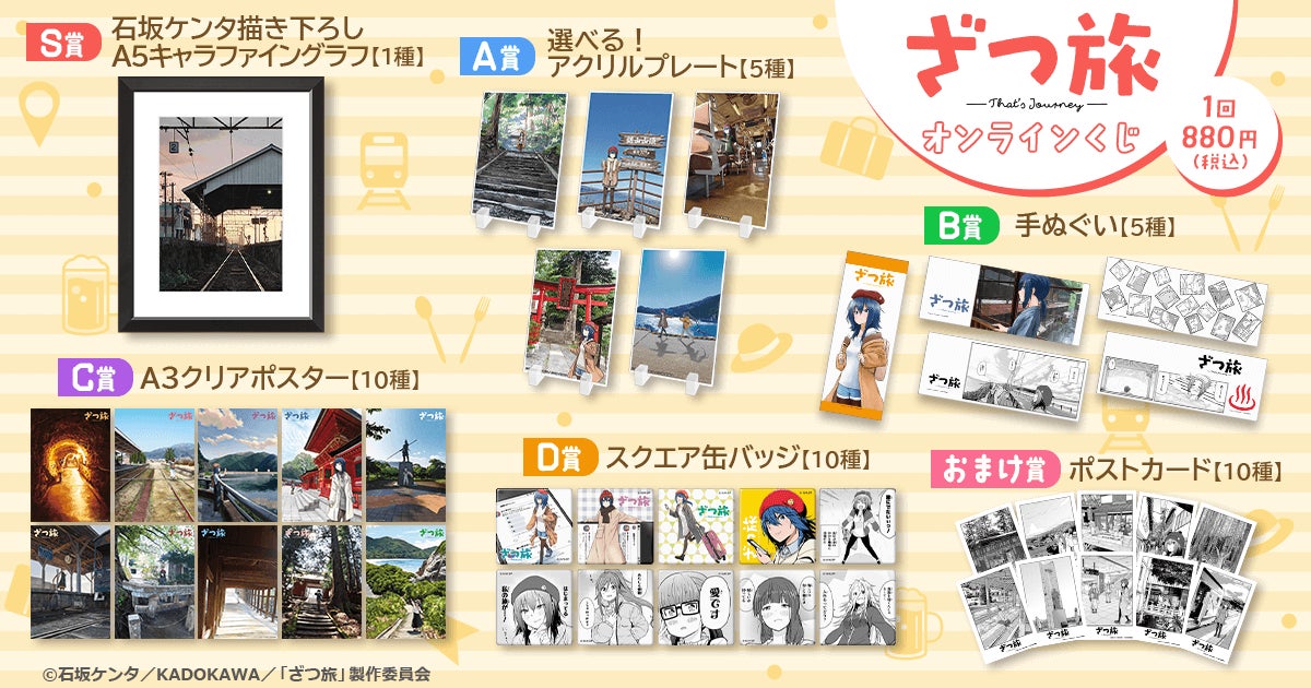ざつな旅だからこそ癒やされる! 「ざつ旅-That's Journey-」がくじ引き堂に登場!石坂ケンタ先生の描き下ろしイラストを含む、旅の風景を思い起こさせる賞品が当たる!