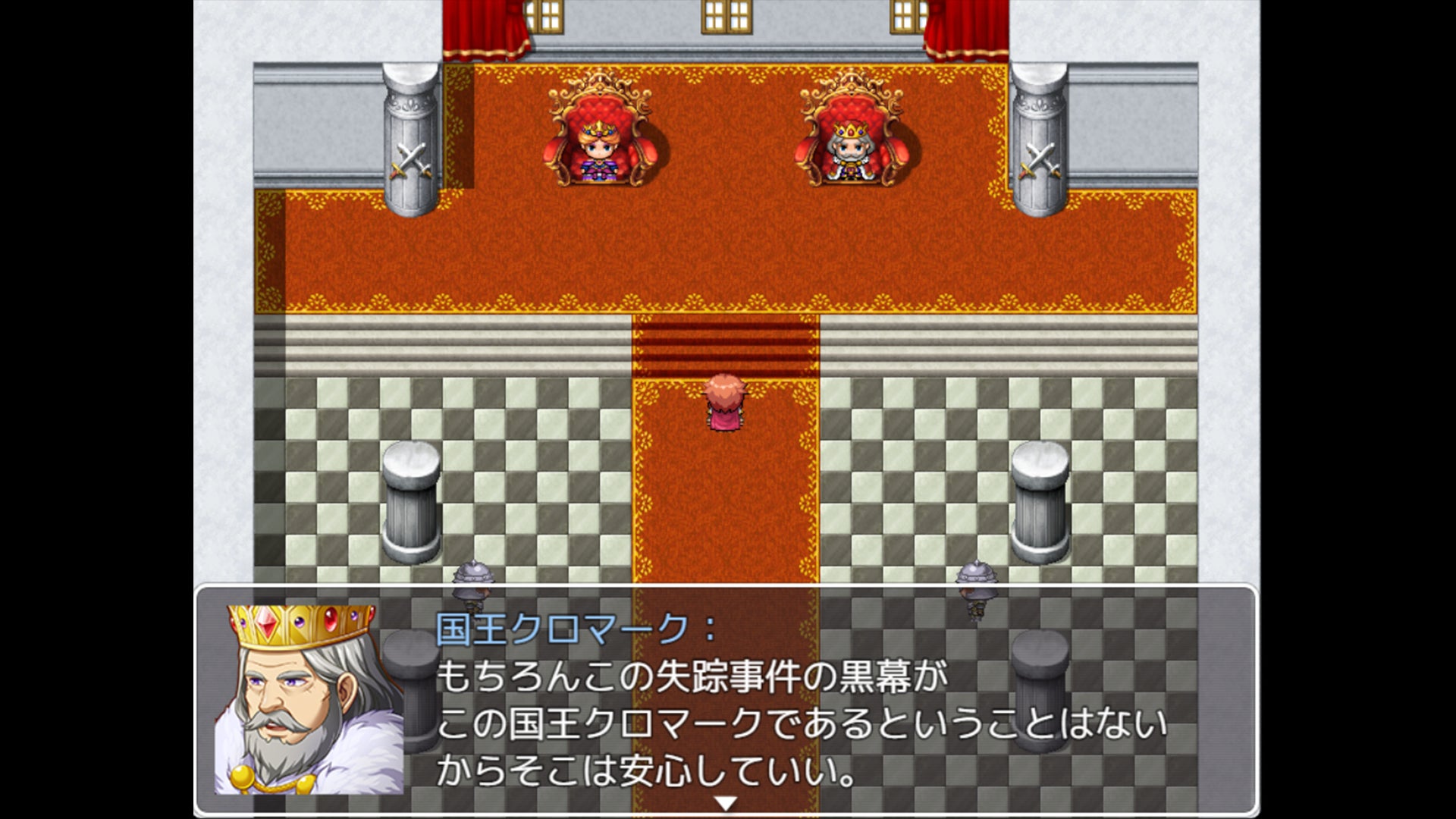 この事件の黒幕を倒せと勇者に命ずる国王クロマーク。