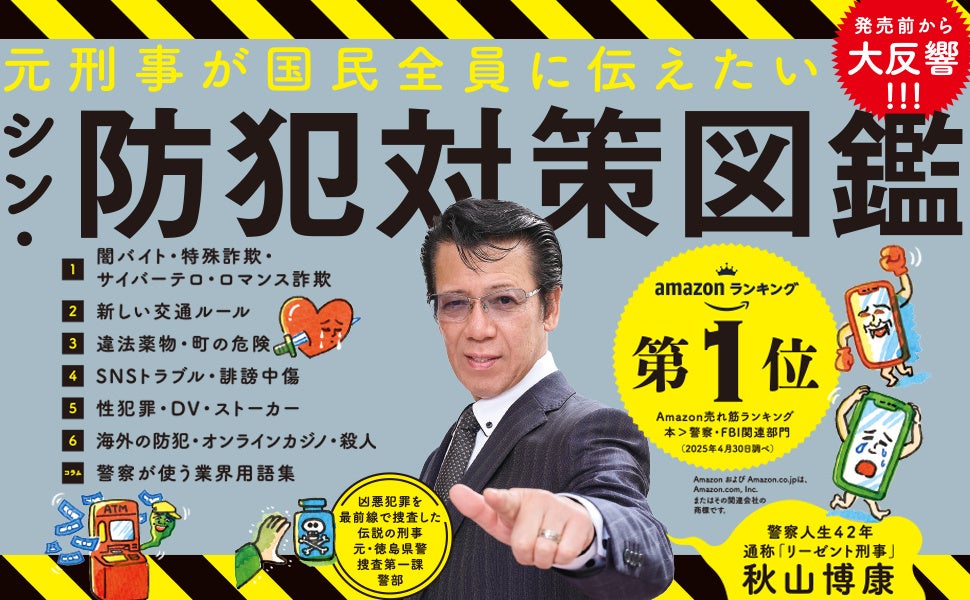 発売前から大反響! Amazon売れ筋ランキング 本>警察・FBI関連部門 第1位* 「リーゼント刑事」秋山博康が巧妙な最新の犯罪手口を解説する『元刑事が国民全員に伝えたい シン・防犯対策図鑑』刊行