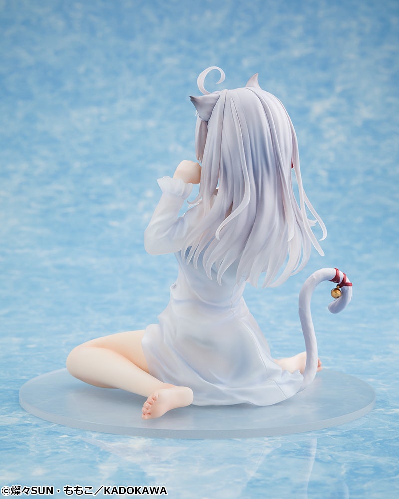 本アイテムは、原作イラストレーター・ももこ先生が原作小説のリバーシブルカバー用に描き下ろしたイラストをモチーフに、アーリャが猫耳水着姿で猫ポーズをしている姿を立体化。恥ずかしそうに上目遣いでこちらを見つめる表情を丁寧に再現!はだけたシャツもクリア素材で表現しており、ももこ先生の透明感のあるイラストの雰囲気を再現しています。