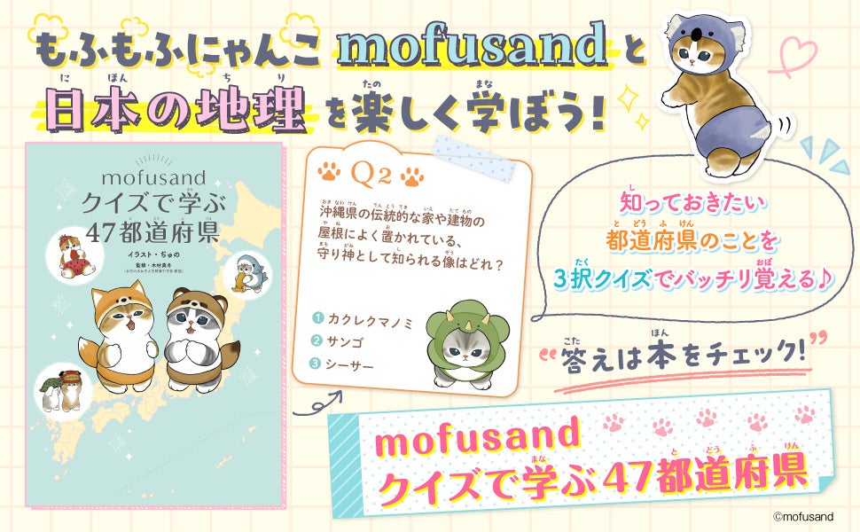 人気のもふもふにゃんこ「mofusand」と一緒に、都道府県のことをクイズで楽しく学べる本が2025年7月16日(水)に新発売!