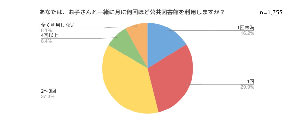 最も多いのは、「月2~3回」と答えた方で、37%という結果でした。月に1回以上図書館を利用すると答えた方は合計で約75%と、非常に多くの方が図書館を利用されていることが分かります。