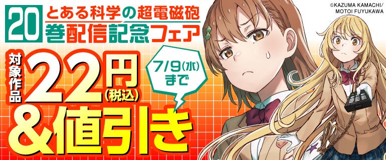 2025年6月26日(木)~7月9日(水)まで、「とある科学の超電磁砲」コミックスシリーズを対象とした電子書籍フェアもスタートします。対象巻が22円(税込)となるほか、続刊も最大50%OFFと、とってもお得な価格でシリーズを読むことができるチャンス!