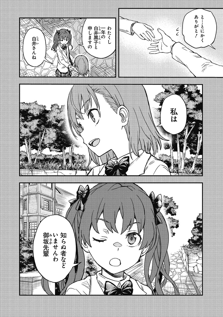 新年度を迎え、白井黒子ら新入生が常盤台中学へと入学してきた。その矢先、学園都市では常盤台中学と関係の深い要人や企業を狙い能力を使った事件が続発。常盤台中学の全生徒へ疑いの目が向けられ、御坂美琴と食蜂操祈も監視下に置かれてしまう。そんな中、風紀委員として事件の情報を集める白井黒子は、一七七支部のパソコンに残されていたあるメッセージに気が付き……。