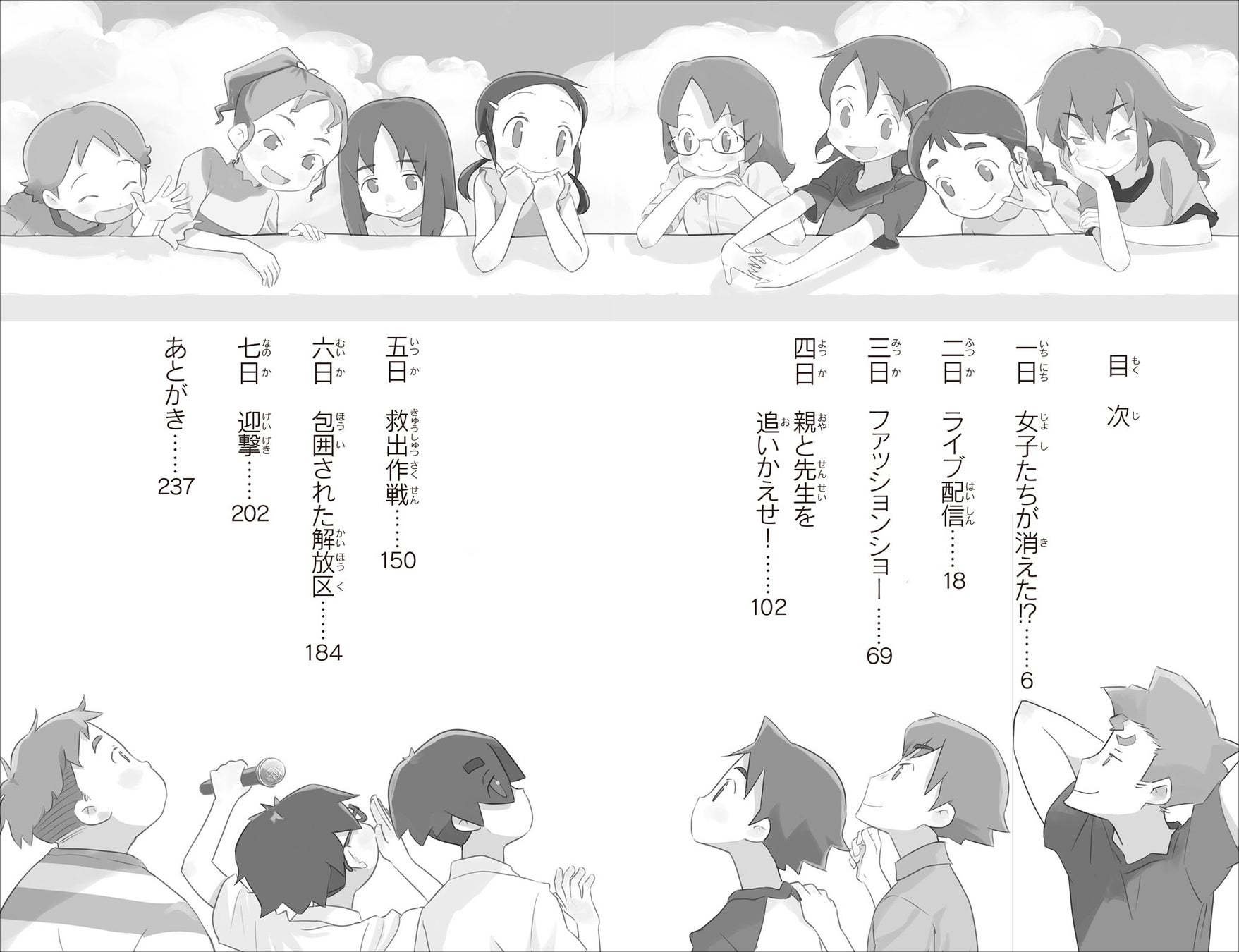 中学2年の夏休み、クラスの女子が姿を消した! 「解放区」を作るため、ある場所に立てこもったのだ!? 女子だけでライブ配信やファッションショーを行い、親や先生を追い返す。そして、最高の七日間に……なるはずが、犯罪グループの事件に巻きこまれ、ひとみと純子が誘拐されてしまい――!? 英治たちは敵のアジトに乗りこみ、女子との共同作戦を開始! さらに、ピラニアのプールや地獄のターザンロープ、ぼくら史上最強の巨大迷路を作って、迎え撃つ! 宗田理さんが届けたかった新たな『ぼくらの七日間戦争』!