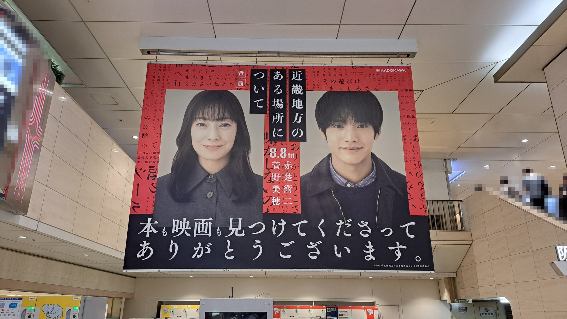 また、映画『近畿地方のある場所について』が8月8日(金)に全国公開することを記念して、大阪梅田駅に交通広告も掲出中です。
