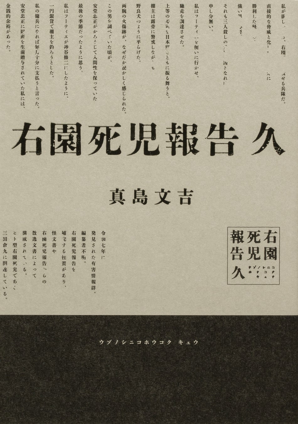 令和■年、発見された一連の有害情報群。 編纂者は不明。 本情報群は、「右園死児報告」を補完する性質を持ち、 その構成は、怪文書、または報告書から散逸した断片的文書によって成り立っている。
