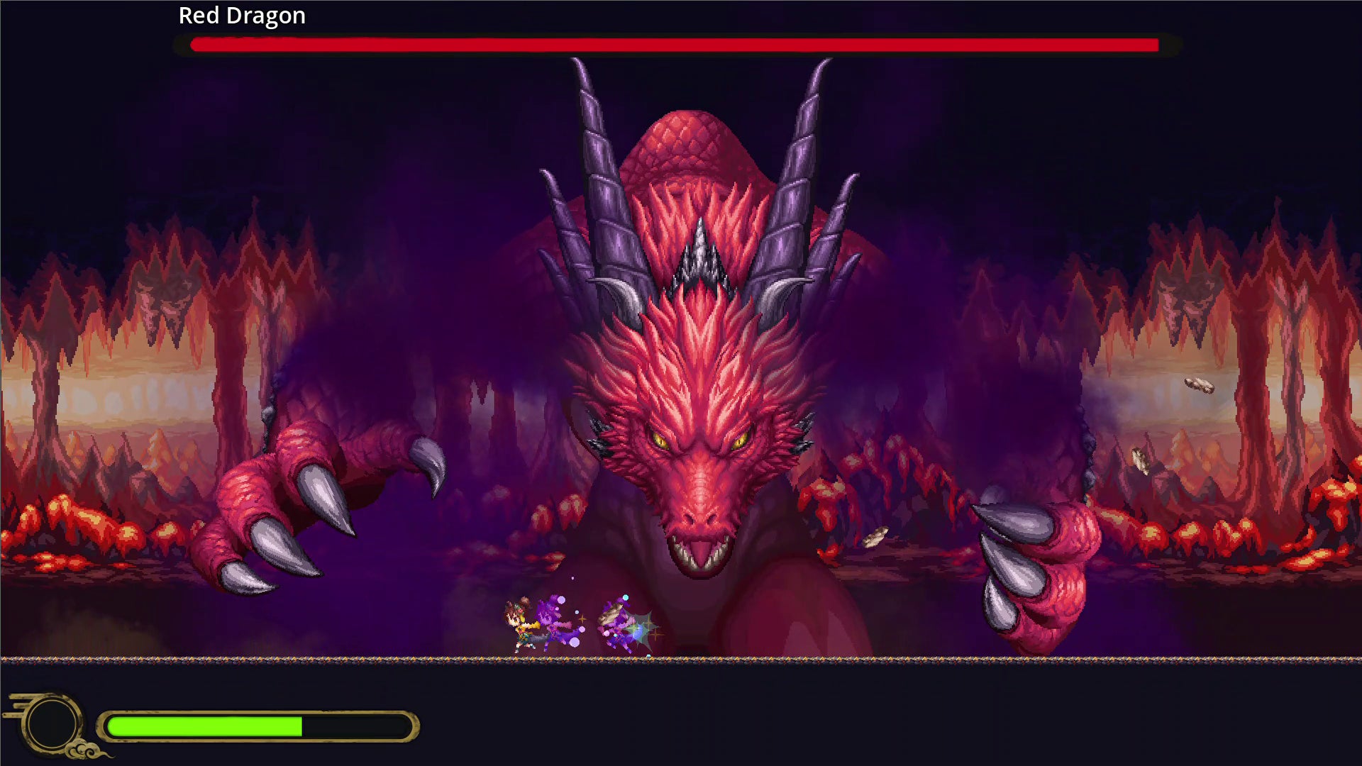 巨大なドラゴンを相手に、キャラクターが画面狭しと動き回る! ジャスト回避を決めれば、大ダメージを与えられるカウンター攻撃も可能。