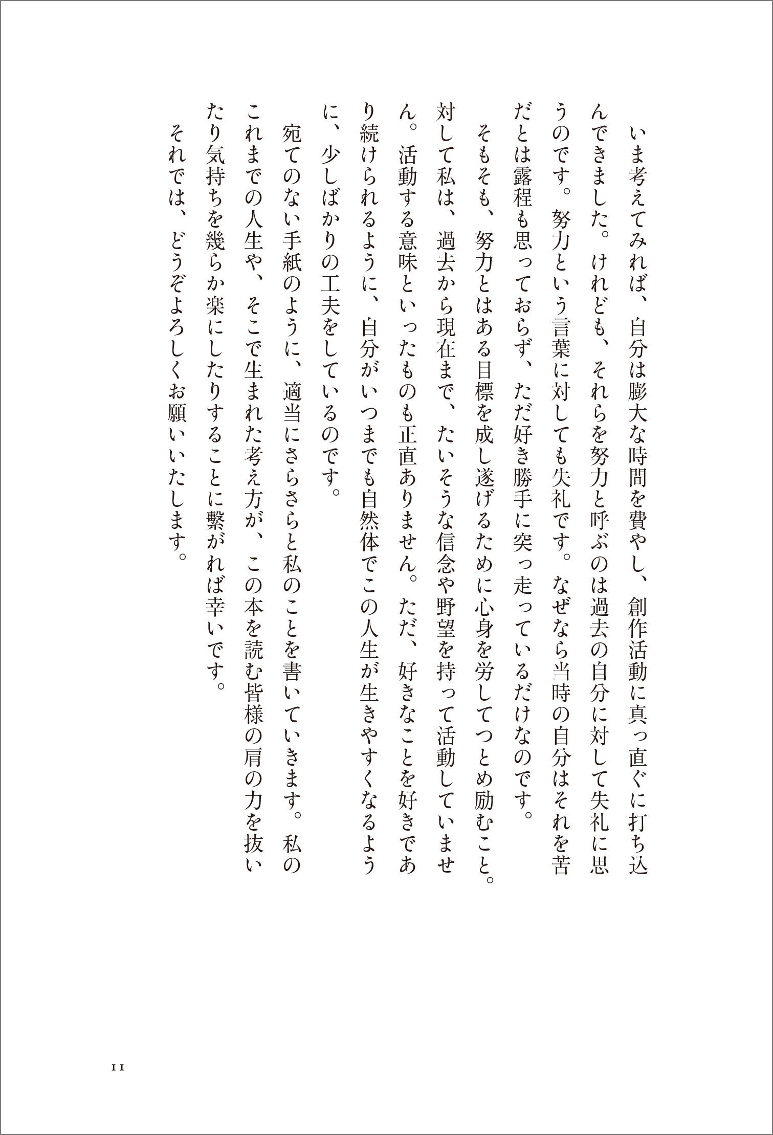 宛てのない手紙のように、適当にさらさらと私のことを書いていきます。私のこれまでの人生や、そこで生まれた考え方が、この本を読む皆様の肩の力を抜いたり気持ちを幾らか楽にしたりすることに繋がれば幸いです。