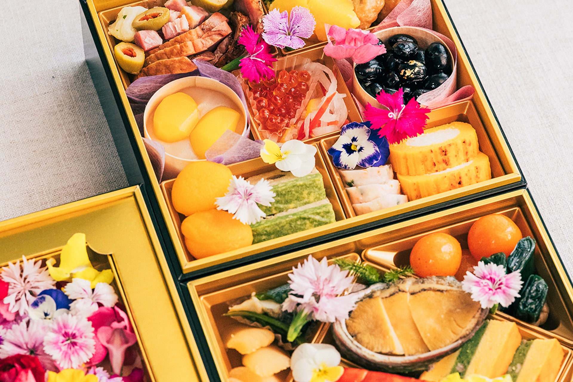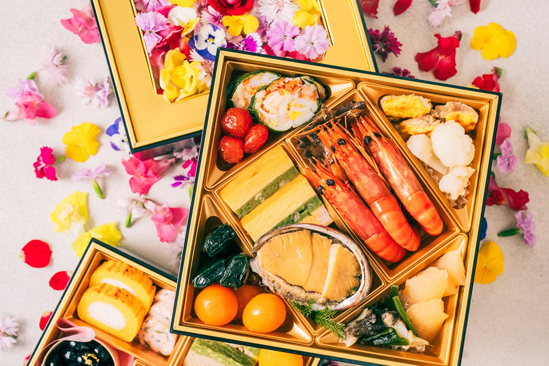 『花時間』がお届けする「花おせち」は、ただの縁起物ではありません。その名が示すように、エディブルフラワー(食用花)をふんだんに使った、新年を明るく照らすおせちです。愛でて、味わい、語り合う……新しい年の食卓に華やぎの時間をも提供するニュースタイル。花好きの方はもちろん、毎年同じおせちに飽きている方、食やライフスタイルにこだわる方々から支持を集めています。
