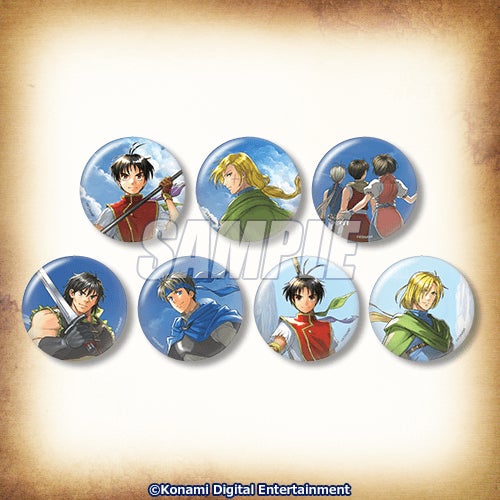 河野純子氏描き下ろしの『幻想水滸伝 I&II HDリマスター 公式パーフェクトガイド』カバーイラストと、『週刊ファミ通2025年3月20日号』のカバーイラストから各キャラクターをピックアップした約75mmのBIG缶バッジです。