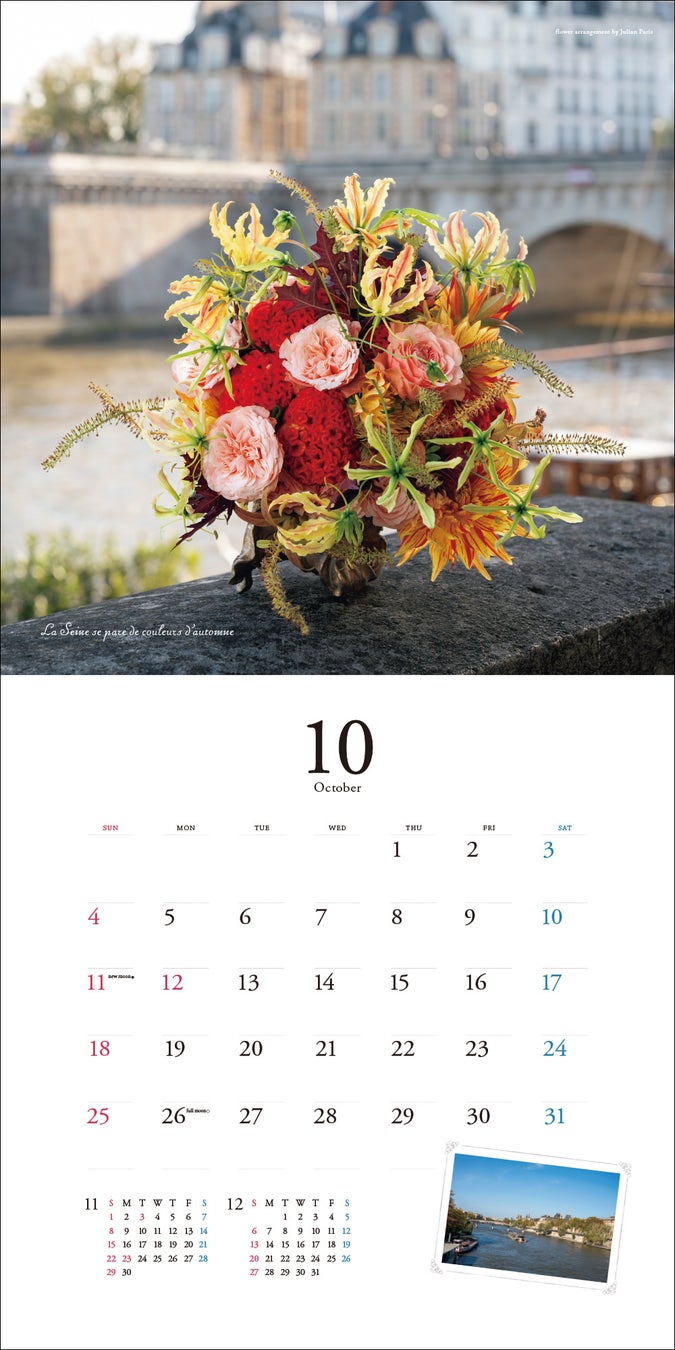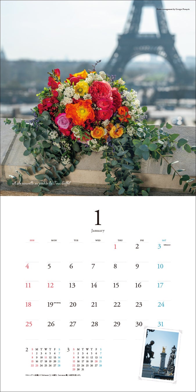 パリのエスプリ溢れる花カレンダーで、眺めるたびに、まるで現地に身を置いているかのような優雅なひと時を味わえます。