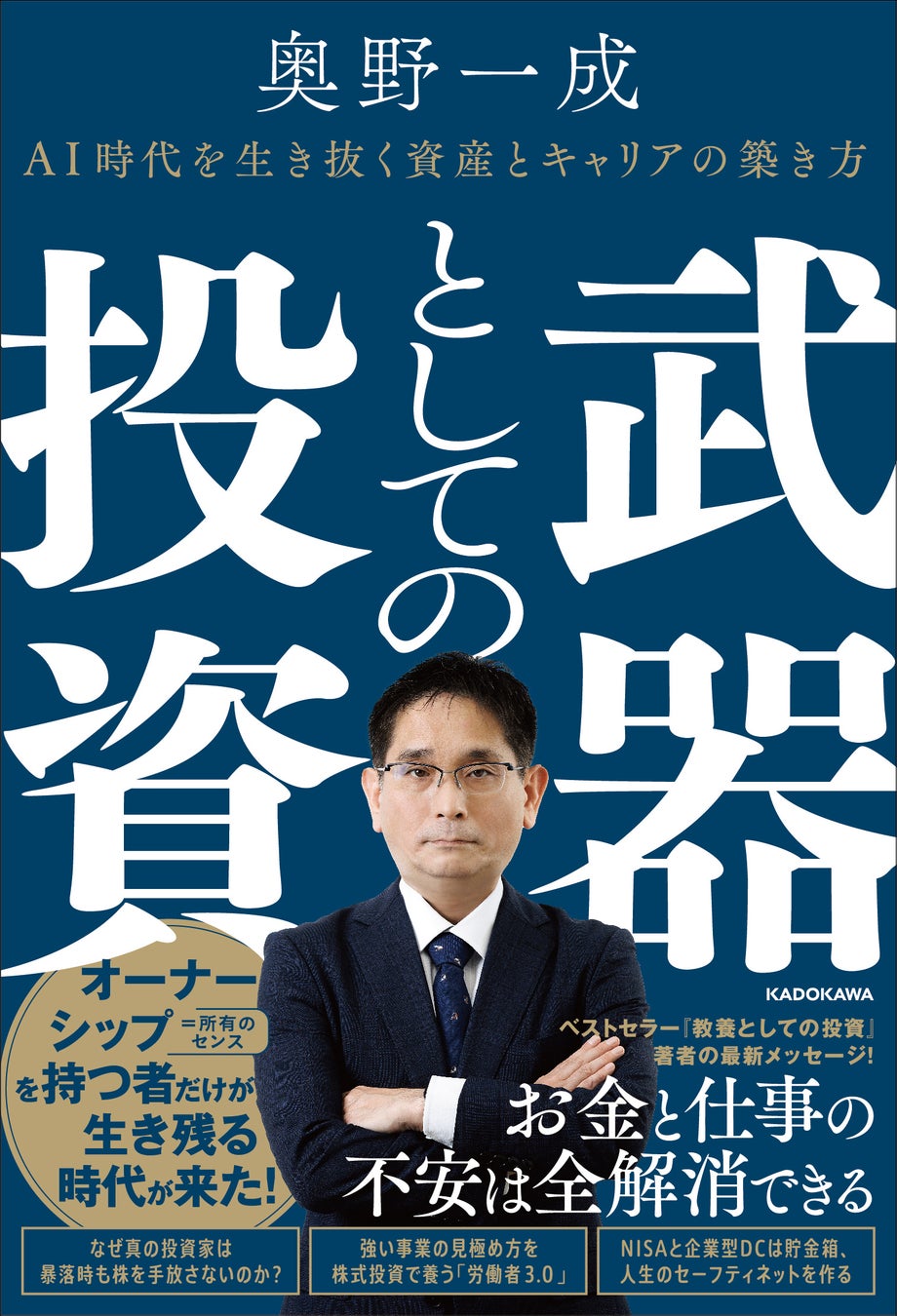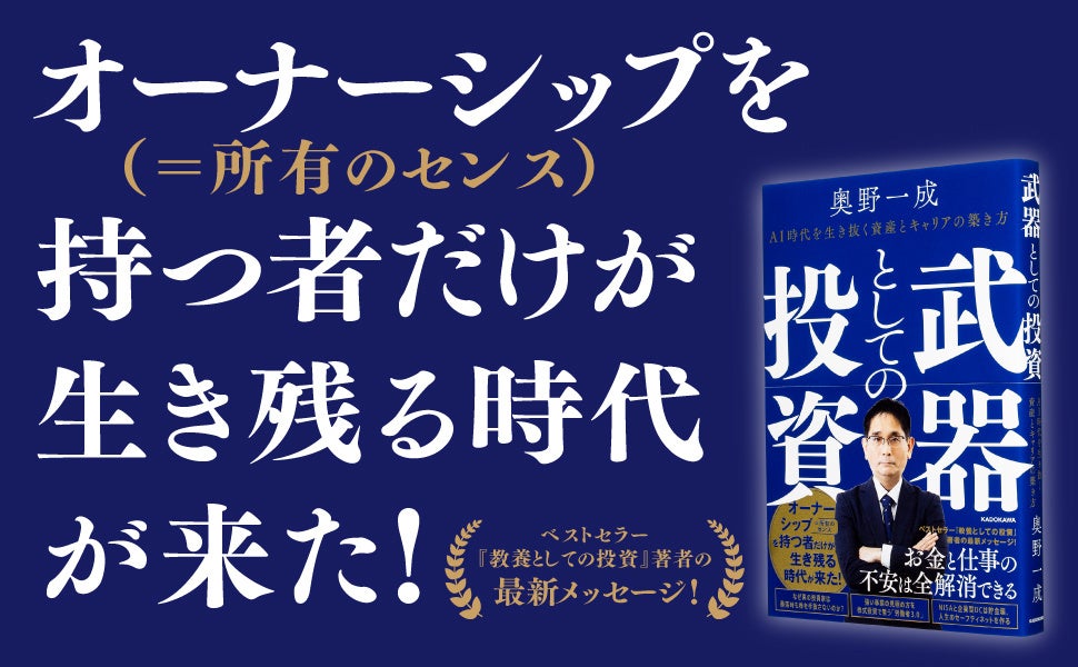 株式会社KADOKAWA(本社:東京都千代田区、取締役 代表執行役社長 CEO:夏野剛)は、2025年9月2日(火)に、投資信託「おおぶね」を運営する農林中金バリューインベストメンツ株式会社常務取締役・最高投資責任者(CIO)であり、ベストセラー『ビジネスエリートになるための 教養としての投資』の著者、奥野一成氏新刊『武器としての投資 AI時代を生き抜く資産とキャリアの築き方』を発売しました。