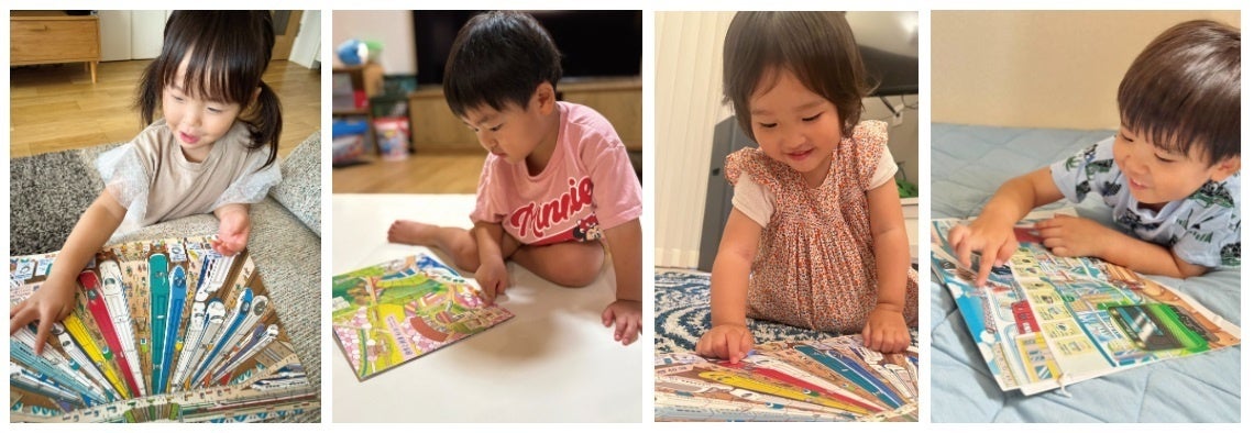 ●子供の年齢に比べて内容が難しいかなと思いましたが、絵もわかりやすく大人よりも早く見つけていました。電車から日本の地域や地理の話にもなり、興味の幅を広げるきっかけにはとても良い本だと感じています。(3歳男の子パパ)