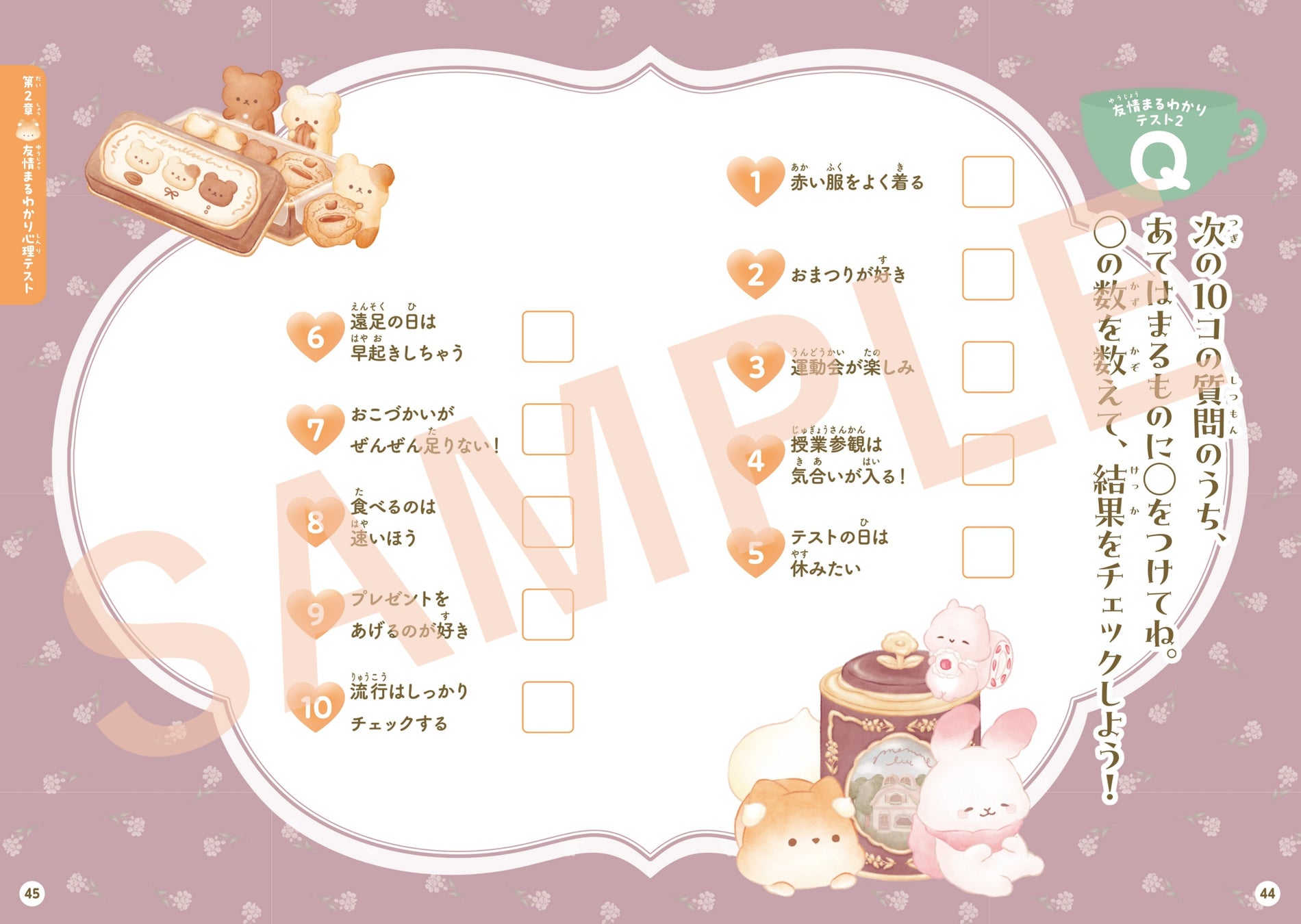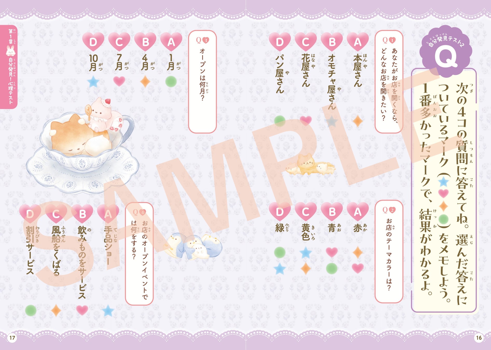 おさとうから生まれたわたあめうさぎ「シュガーココムー」や、その仲間たちのかわいいイラストと一緒に、心理テストを楽しめる本が登場しました。