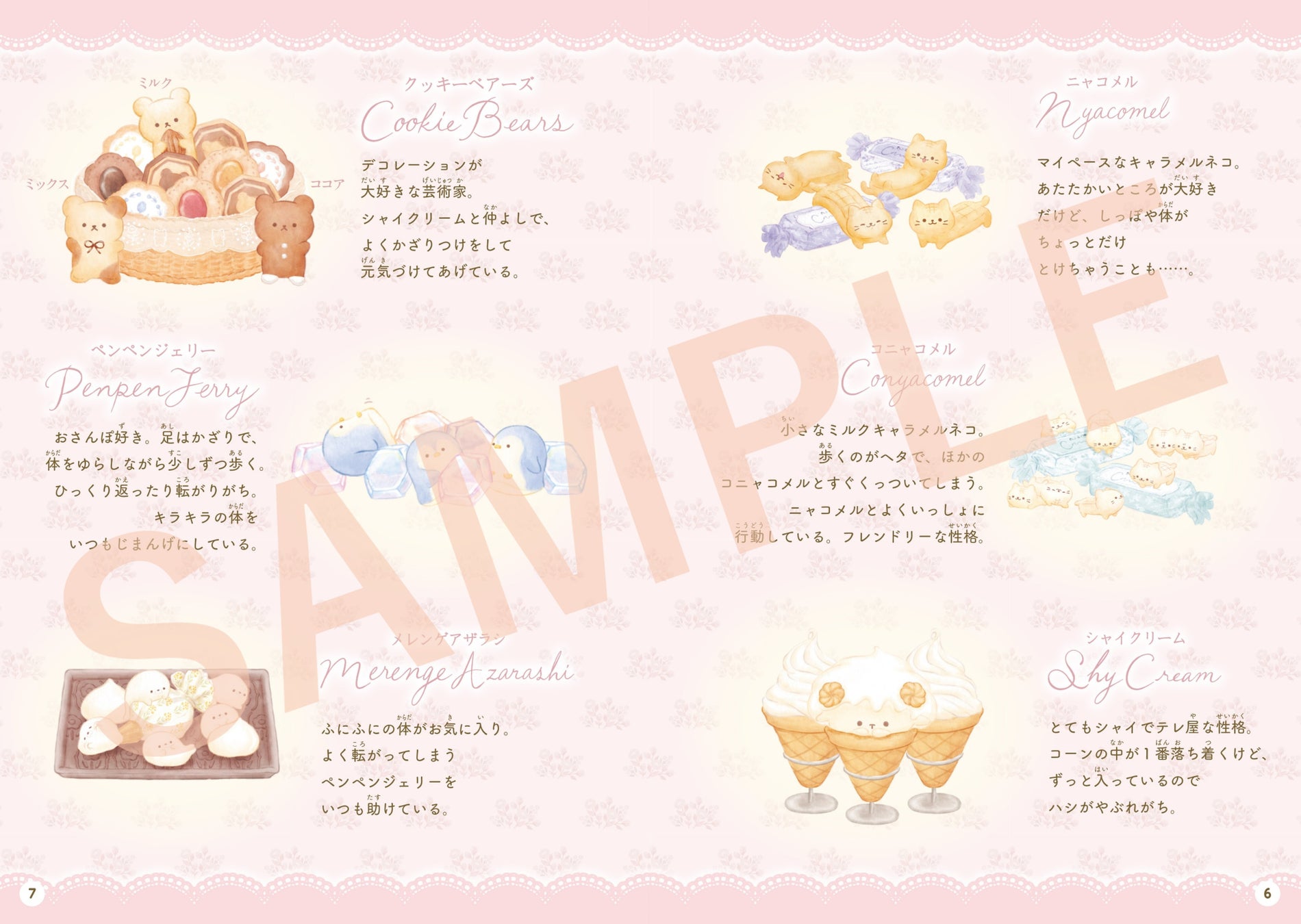 また、「シュガーココムー」やその仲間たち「スフォン」「ローリス」など、ふわふわでかわいいキャラクターたちのイラストもたくさん載っています。