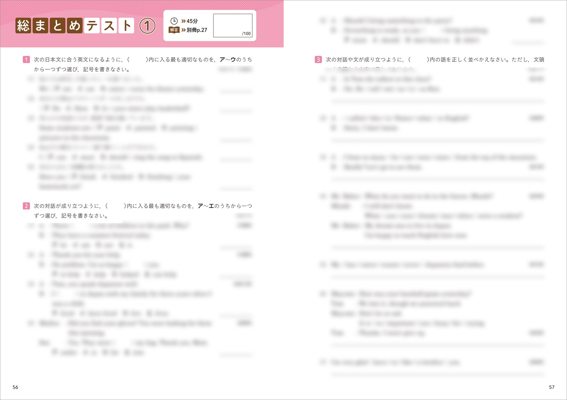 ▲「総まとめテスト」の紙面。さまざまな分野からまんべんなく出題されています。