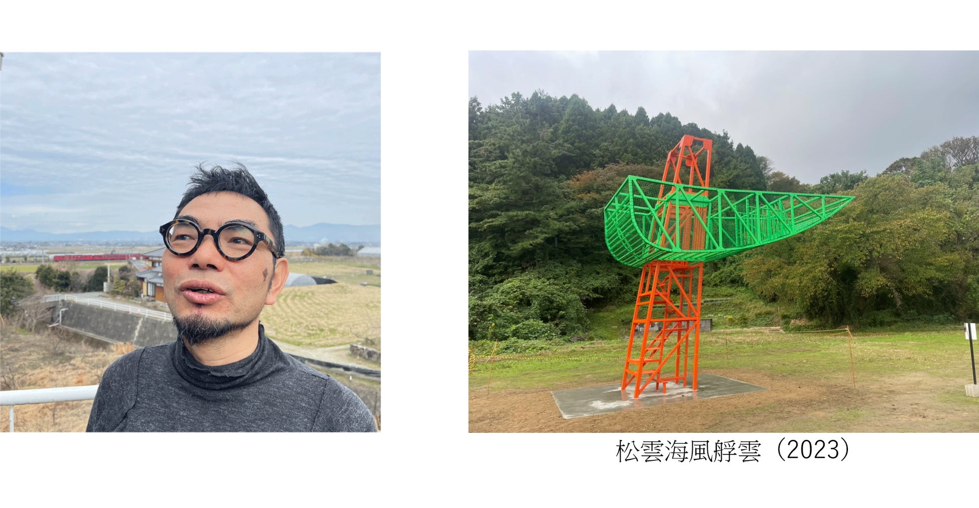 1963年⽣まれ。1980年代、⽥中泯に師事。その後、⾝体パフォーマーとしてヨーロッパ等を回り帰国。家業の遊具製作業を⼿伝いながら⾃ら遊具を彫刻と呼ぶ作品を発表し、現在は代表を務める。近年では奥能登国際芸術祭2023に参加、2024年元旦の地震で作品が被災する。霧島アートの森・⾦沢21世紀美術館・福岡アジア美術館等に作品収蔵。