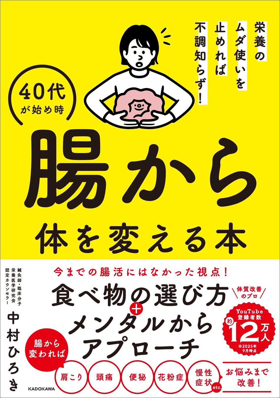 株式会社KADOKAWA(取締役 代表執行役社長 CEO:夏野剛、本社:東京都千代田区、以下KADOKAWA)は、鍼灸師であり、臨床分子栄養医学研究会認定カウンセラーの中村ひろき氏による『栄養のムダ使いを止めれば不調知らず! 40代が始め時 腸から体を変える本』を2025年10月17日(金)に発売いたします。