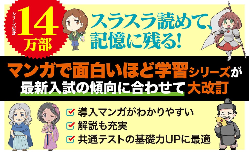 シリーズ累計14万部!「マンガで面白いほど学習シリーズ」社会科目が5冊同時改訂! 最新大学入試の傾向を反映したパワーアップ改訂版